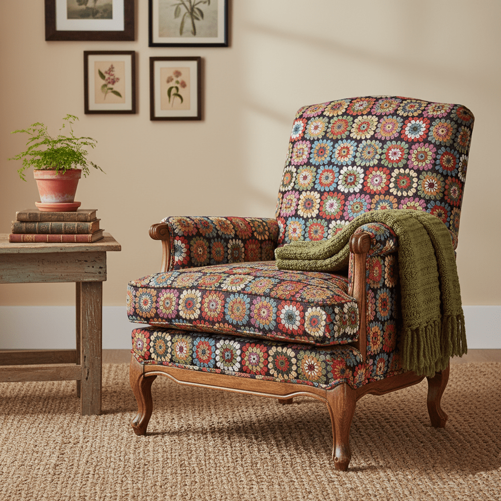 Tejido de Jacquard: Gobelino Estilo Crochet. Tejido resistente de alta calidad. Hecho en España